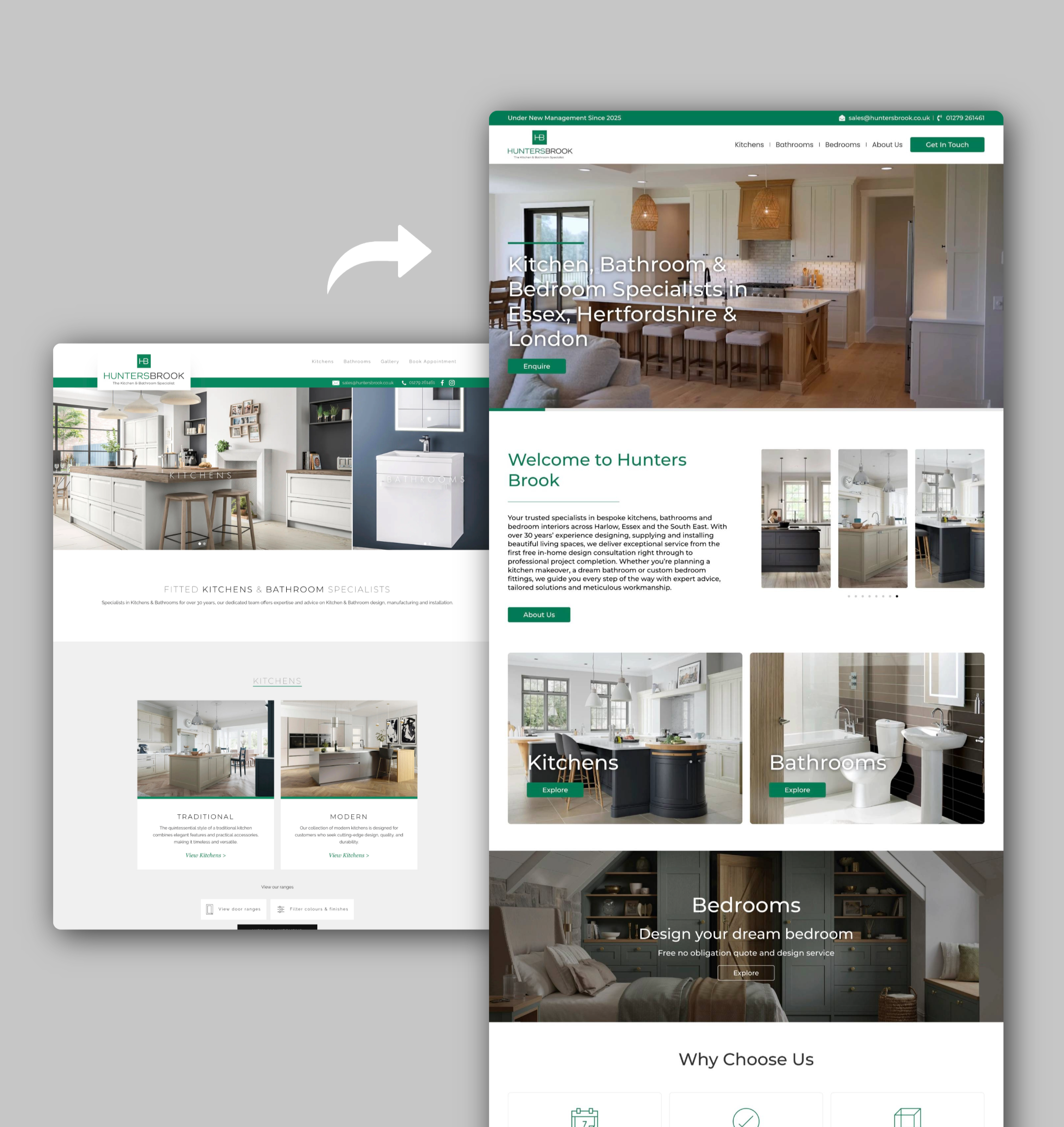 Hunters Brook is a well-established kitchen and bathroom showroom based in Harlow, offering high-quality design solutions for homeowners across the local area. Showcasing a wide range of modern and traditional styles, they provide expert guidance from concept through to completion, helping clients create functional and stylish spaces tailored to their needs. To support their continued growth, we delivered a brand-new website alongside ongoing social media management, content creation, SEO optimisation, and Meta ads management—ensuring a strong online presence and consistent lead generation.